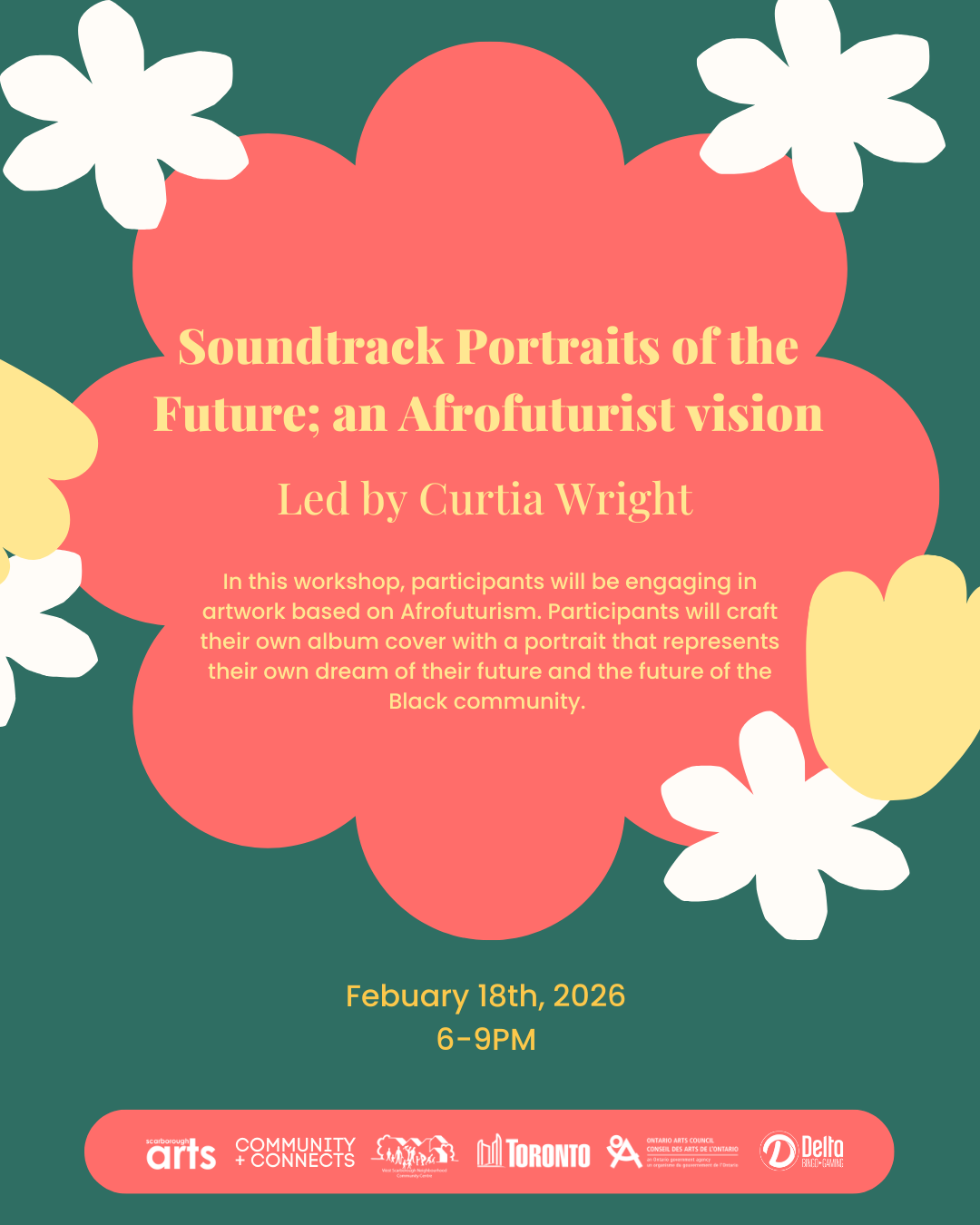 Participants will explore different visual art throughout Black Arts Movement history, creating and engaging with history and art. Scroll below to learn about our East BAM! workshops, taking place at the West Scarborough Neighbourhood Centre all February long.